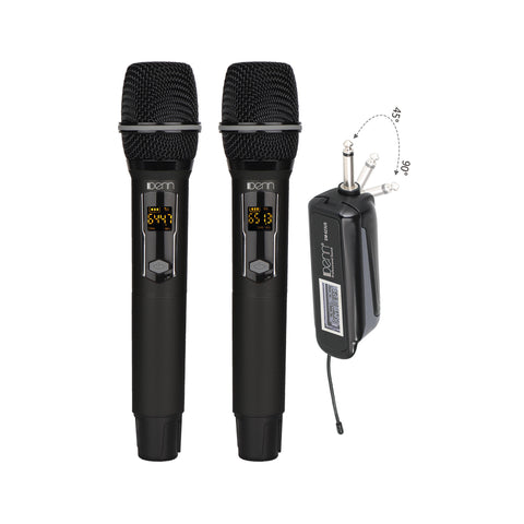 The Denn DM-623US(HH) is a dual handheld wireless microphone system designed for professional and recreational use, offering reliable performance and clear audio transmission. It features two high-quality handheld microphones with UHF frequency operation, ensuring stable signal and minimal interference over extended ranges. Ideal for events, karaoke, presentations, and performances, the system boasts user-friendly controls, LED display indicators, and durable construction. With plug-and-play functionality and compatibility with most audio systems, the DM-623US(HH) delivers crisp sound clarity and dependable wireless convenience for a seamless audio experience.